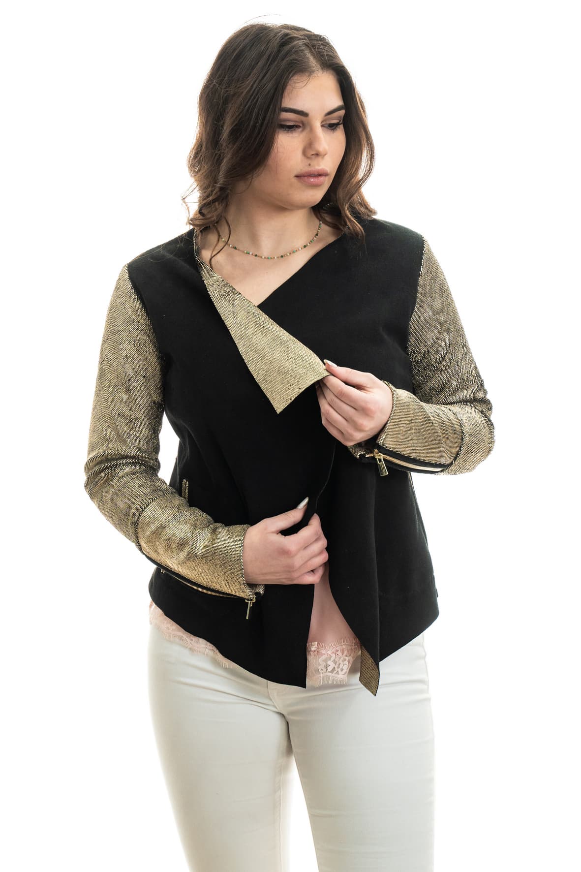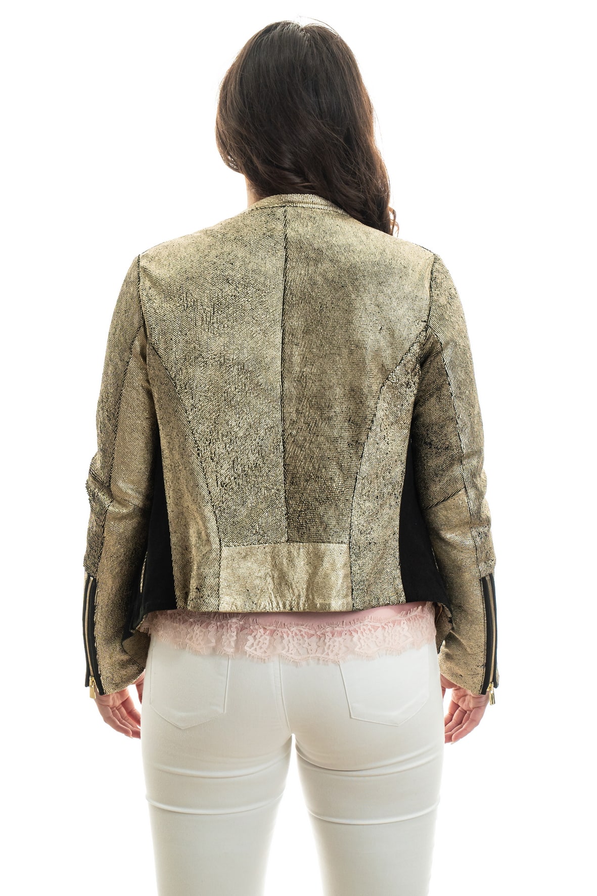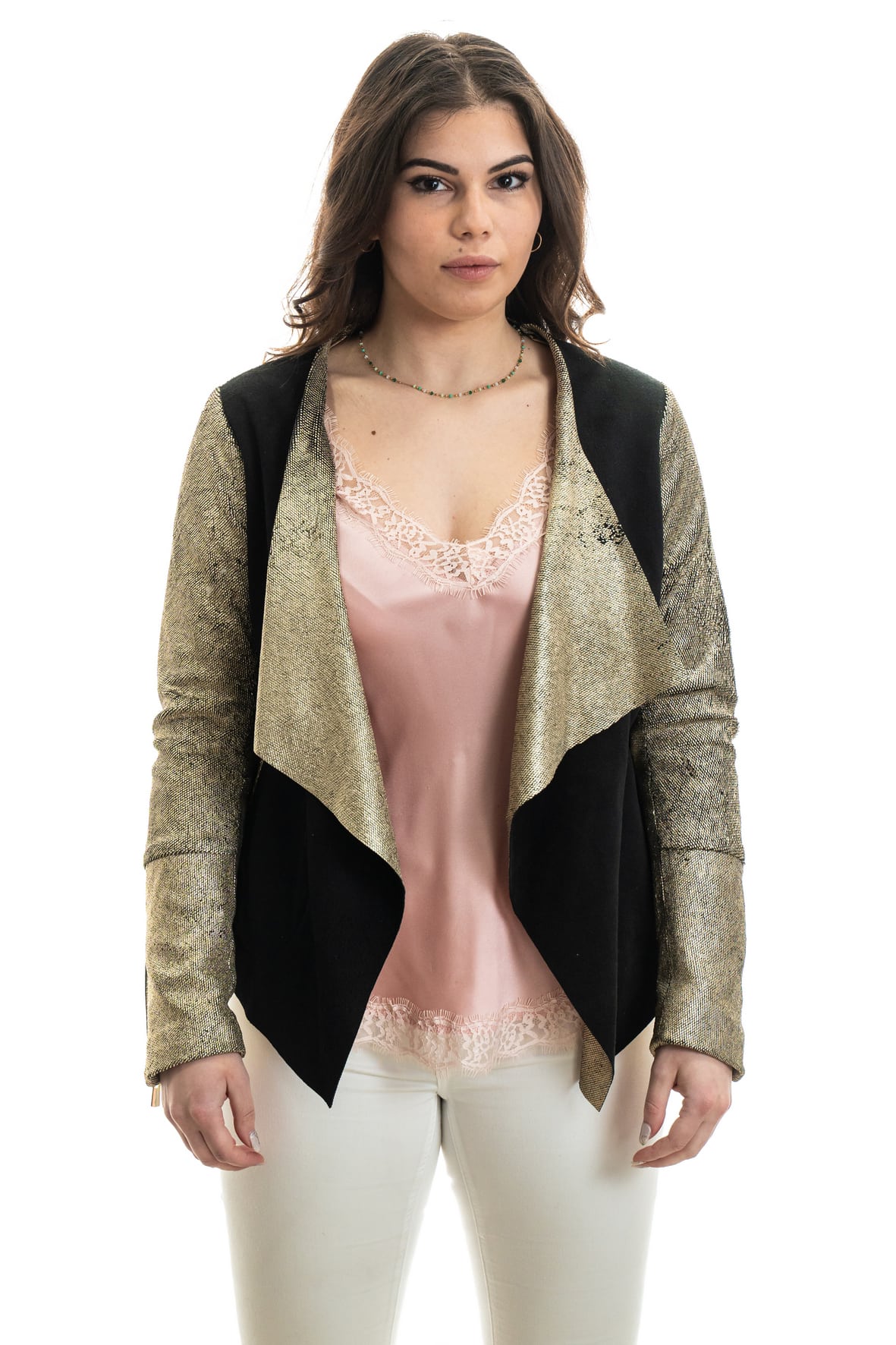 Giubbotto in pelle versione chiodo svasato. Con manica in pelle di colore in contrasto con il davanti. Interno viscosa fodera rete con profilo rosso. |