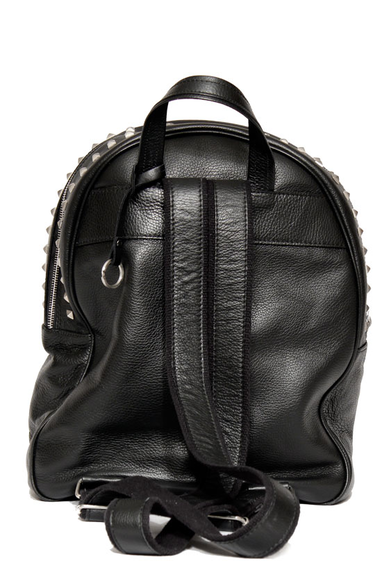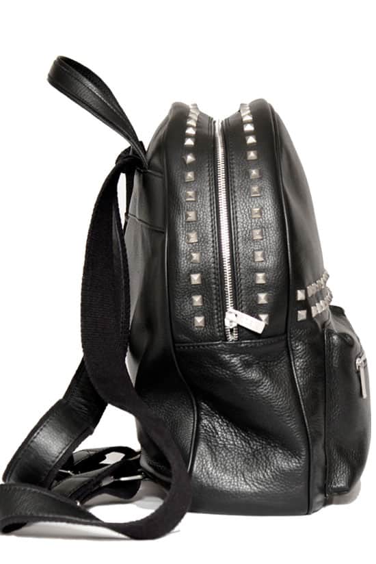Zaino in pelle naturale effetto grana con borchie…