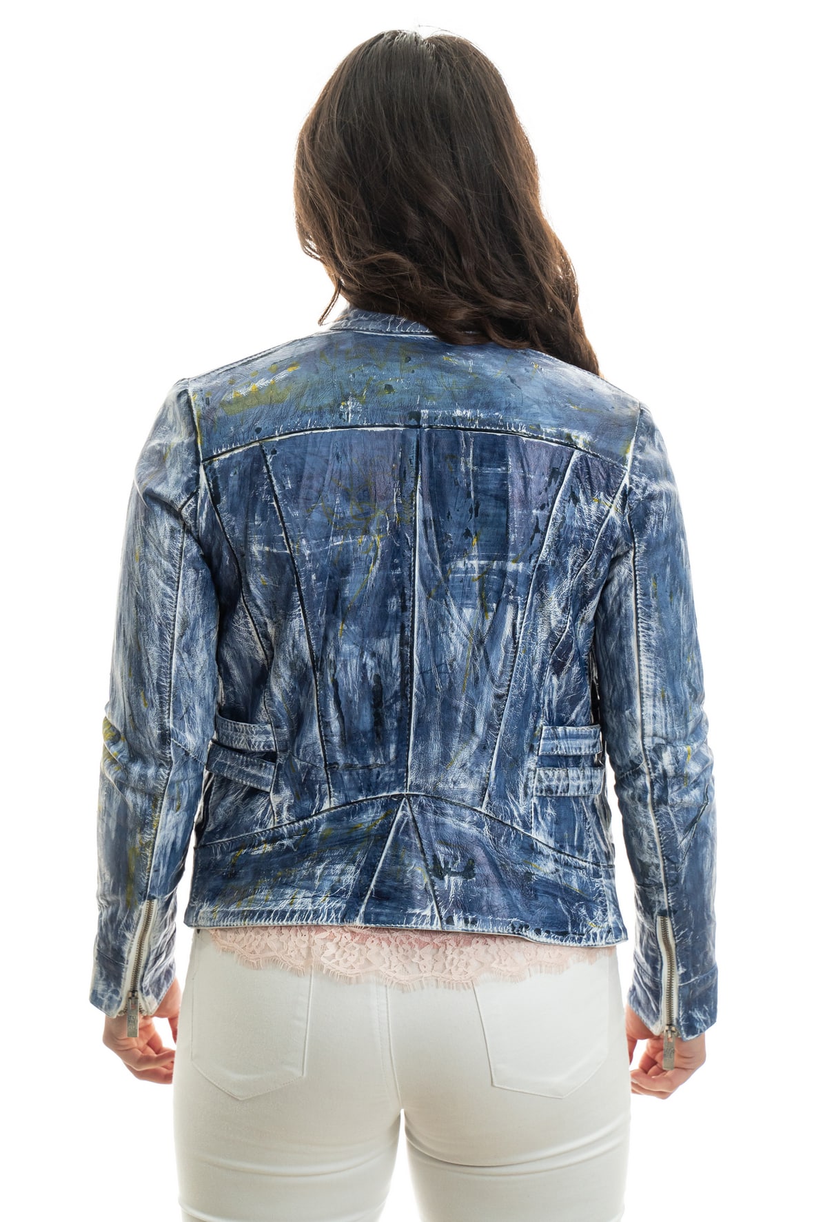 Chiodo in pelle tamponato a mano su fondo bianco…
