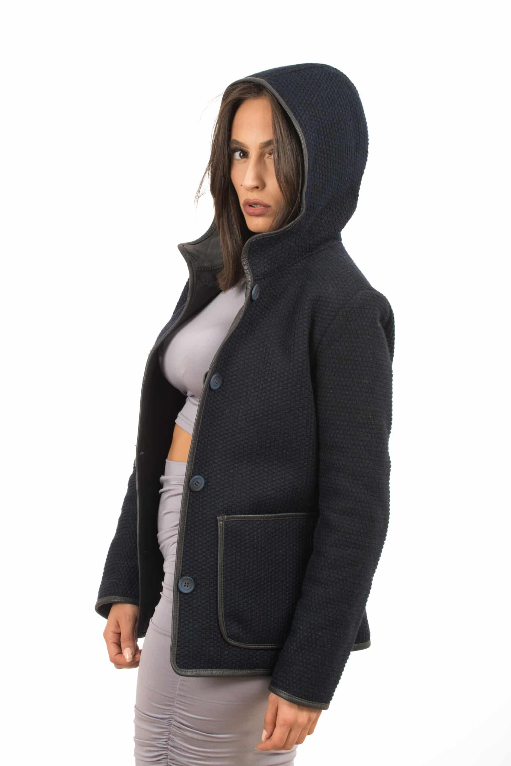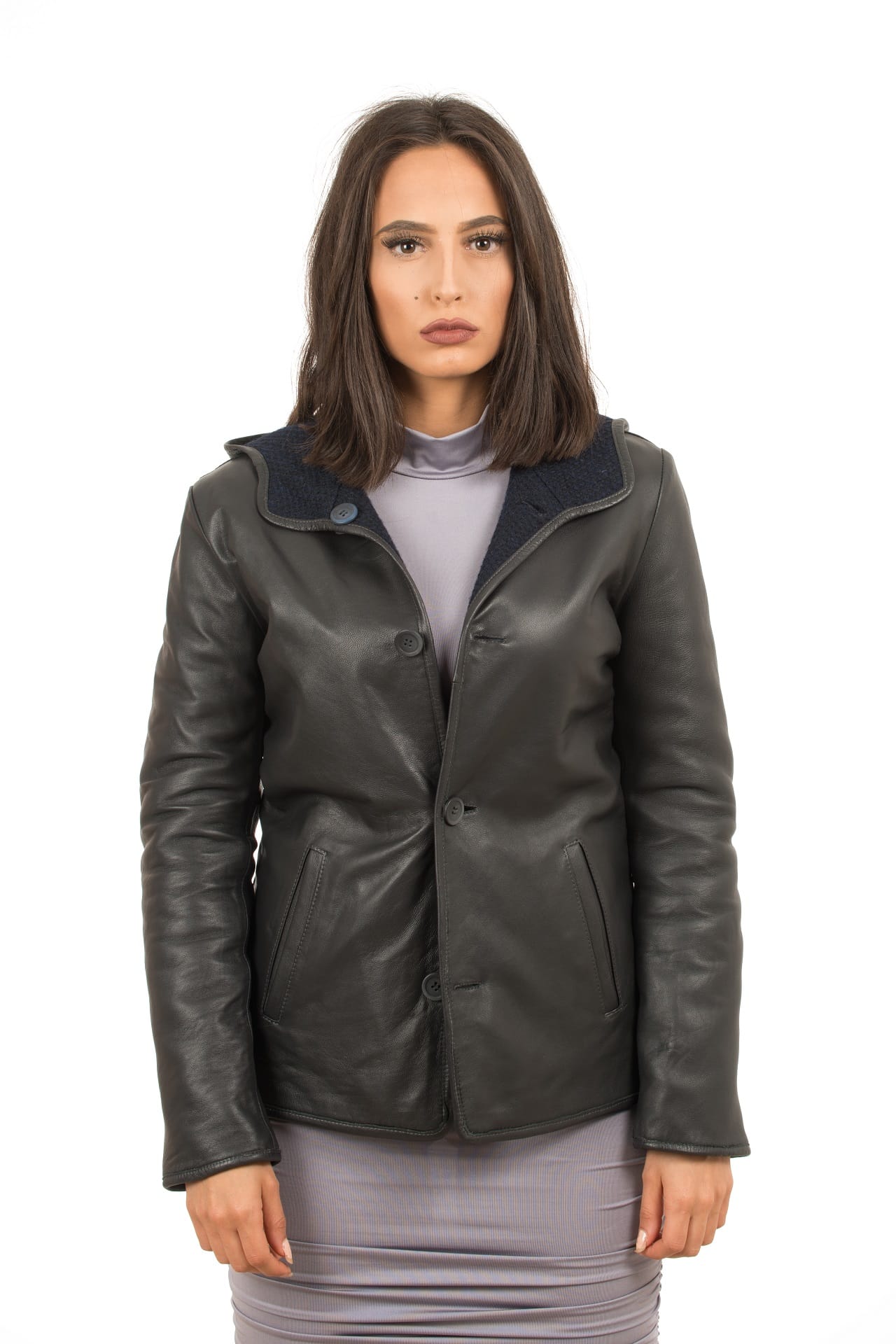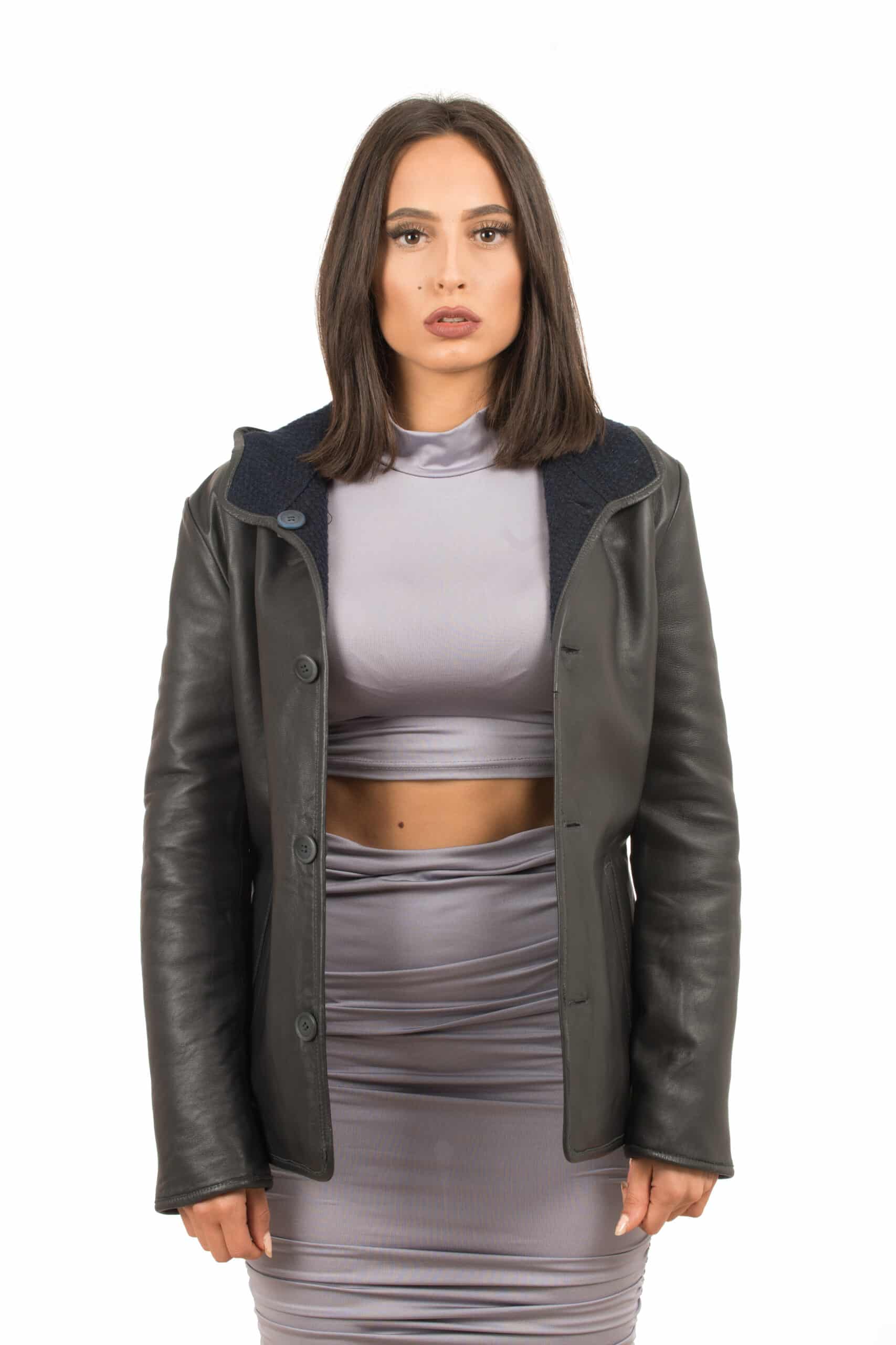Giubbotto in pelle mix lana e pelle double face reversibile con cappuccio