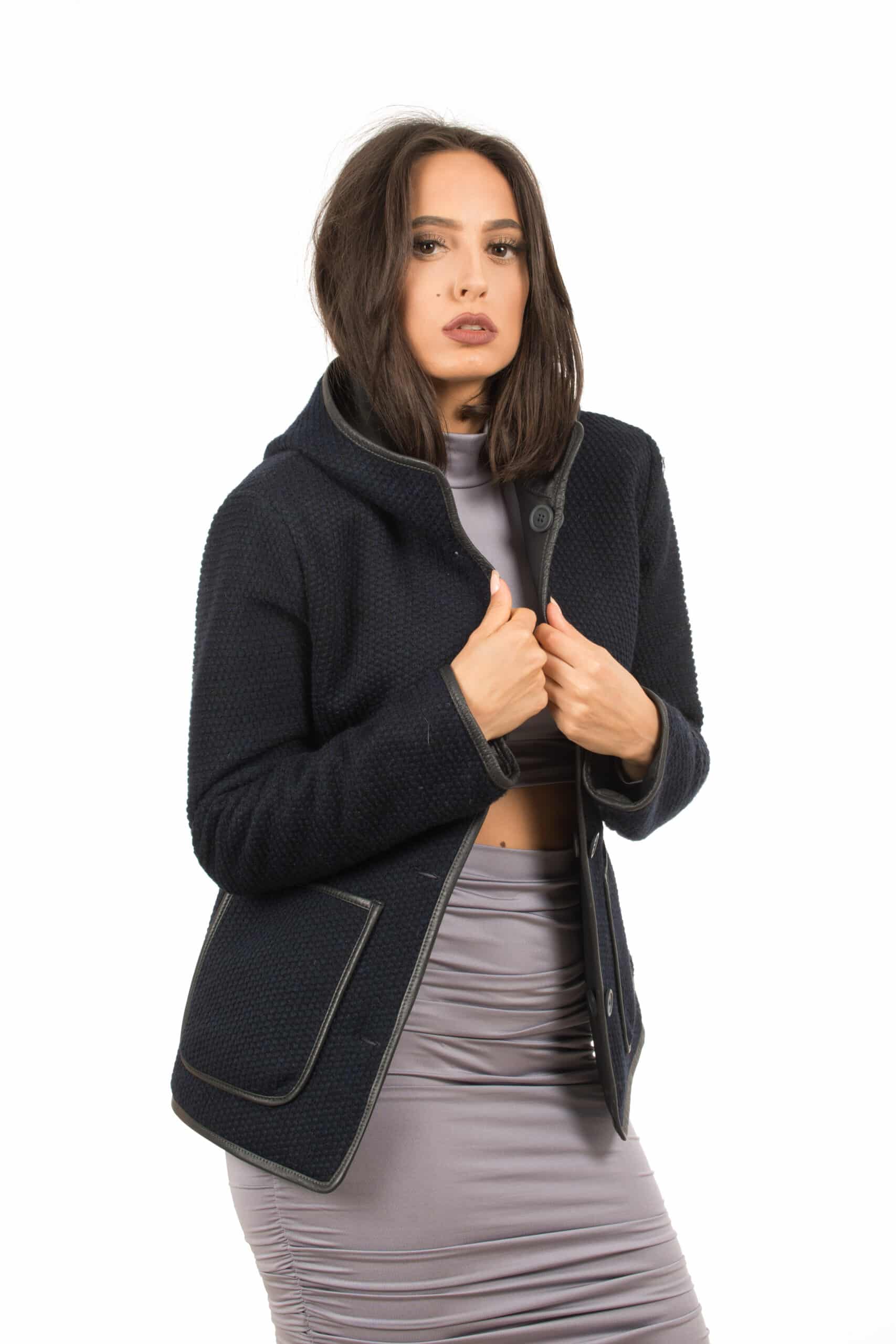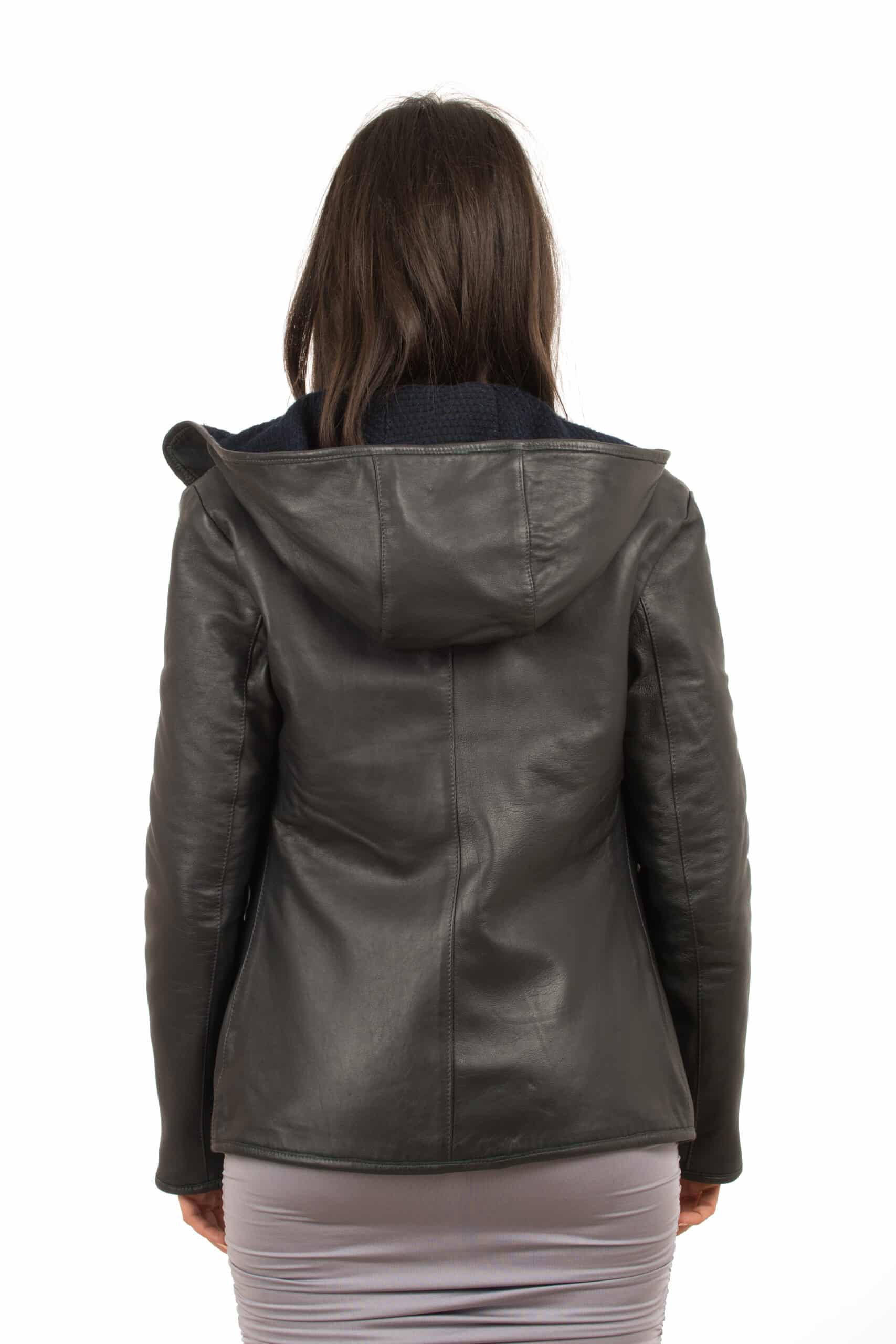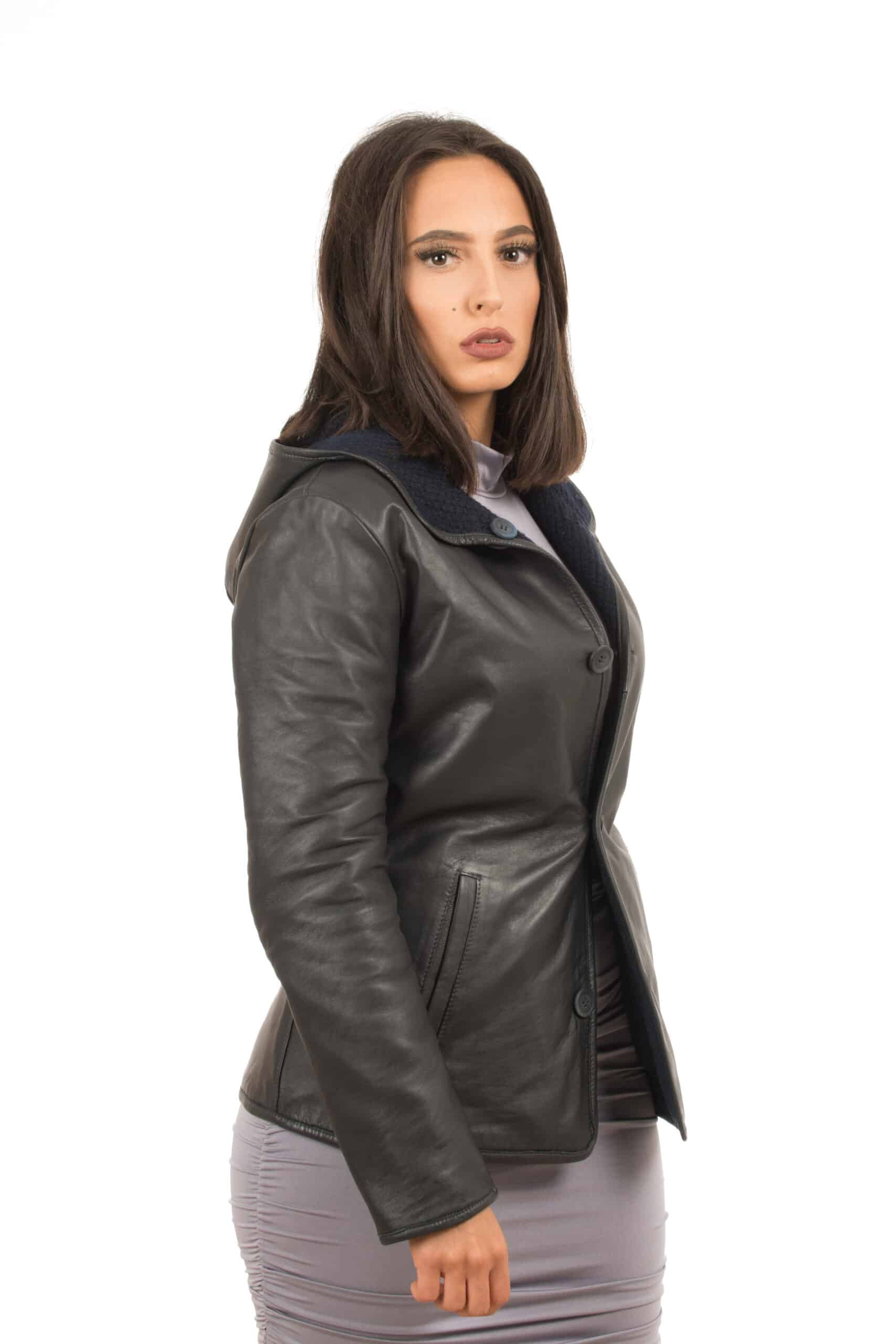 Giubbotto in pelle mix lana e pelle double face reversibile con cappuccio