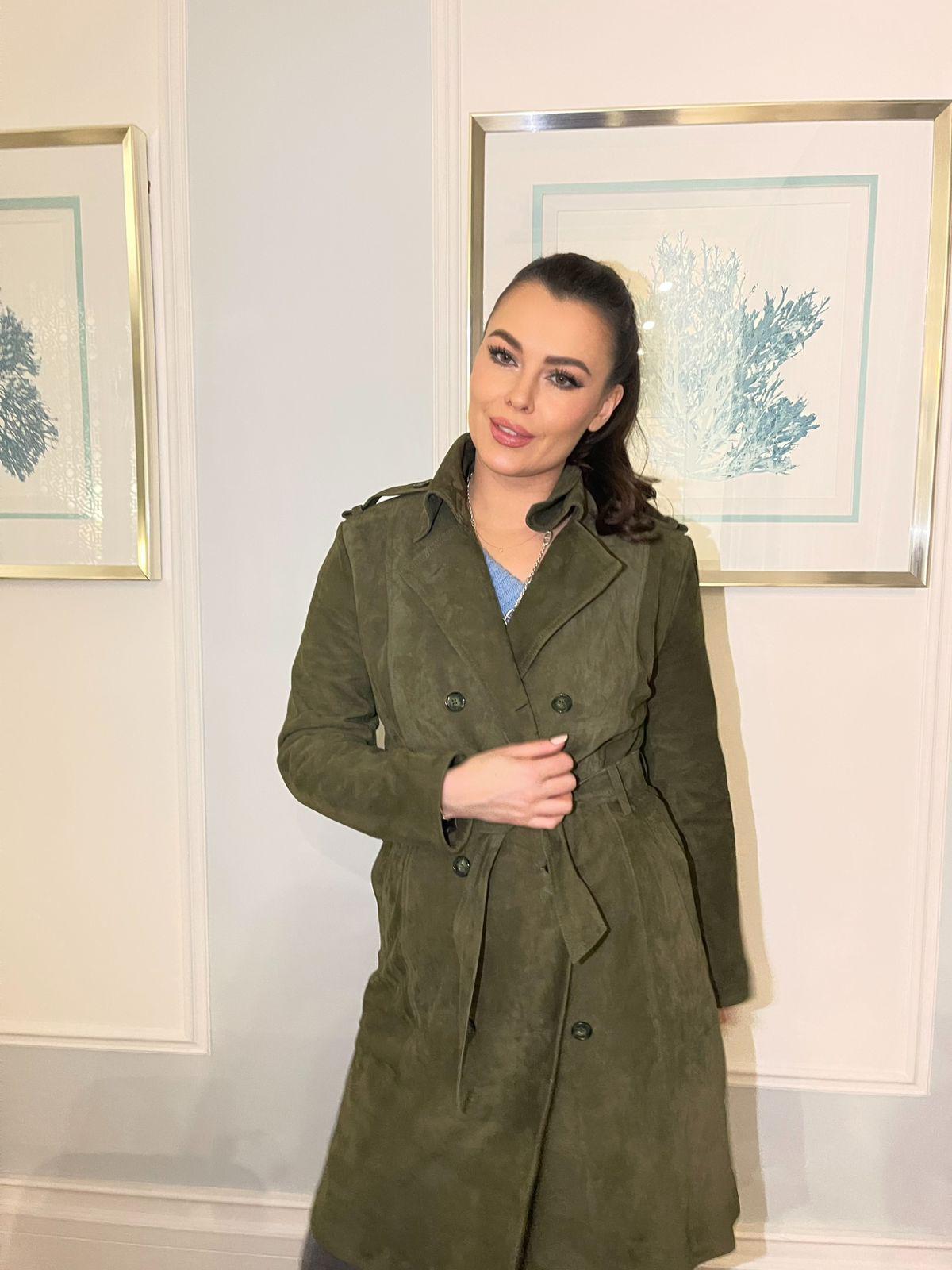 La modella indossa la taglia S, è alta 179 cm e pesa 72 kg.