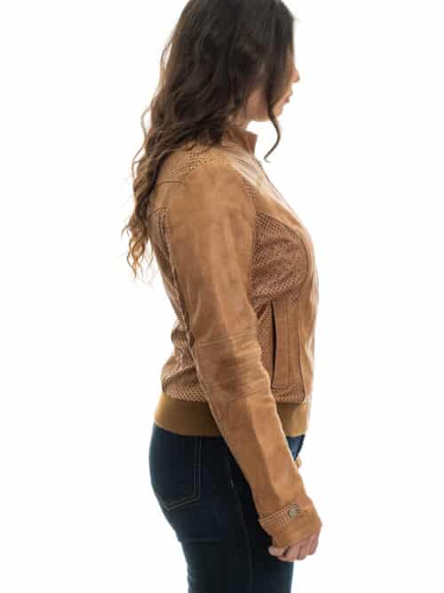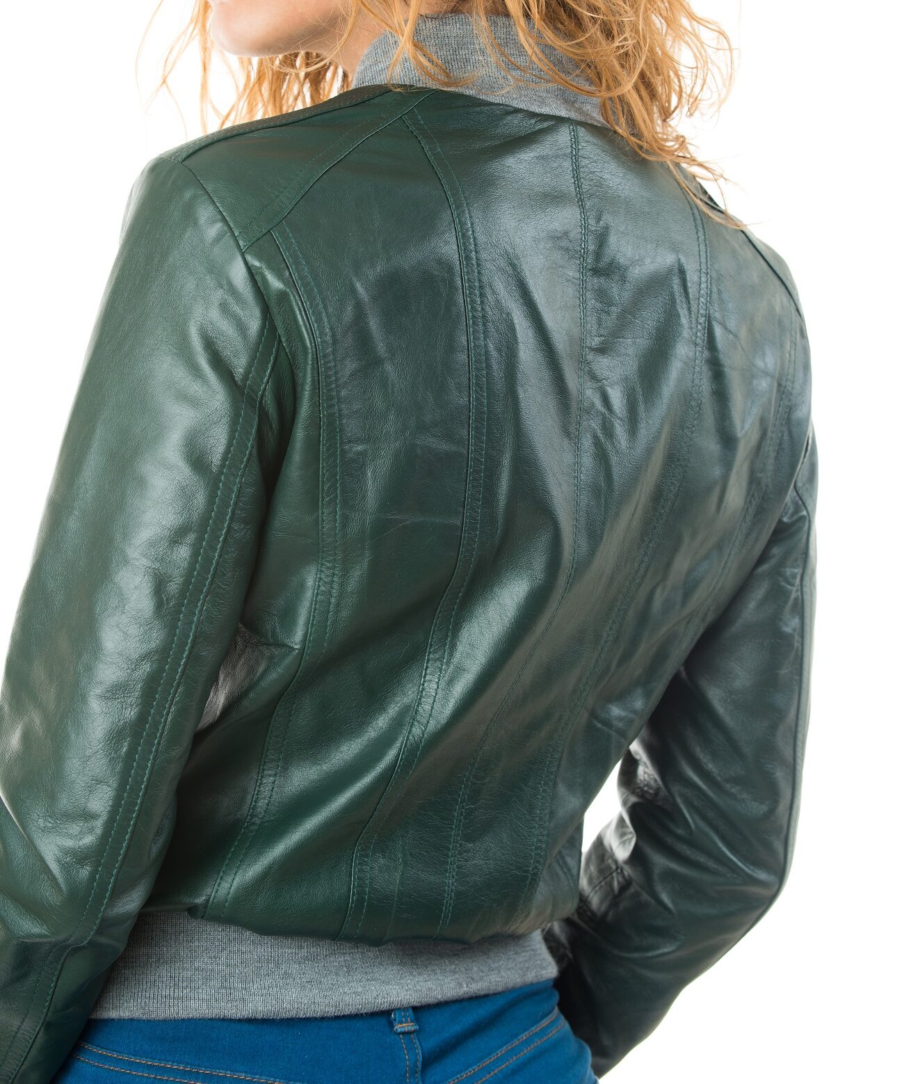 Bomber primaverile con maglina ai polsi e collo mezzaluna contrasto colore grigio