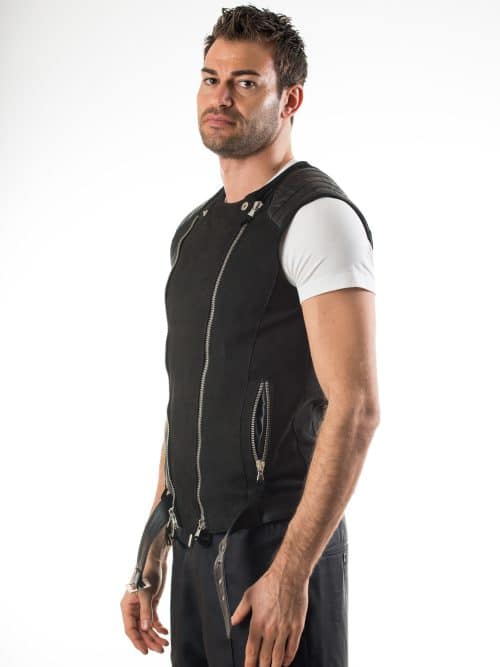 La modella indossa la taglia S, è alta 179 cm e pesa 72 kg.