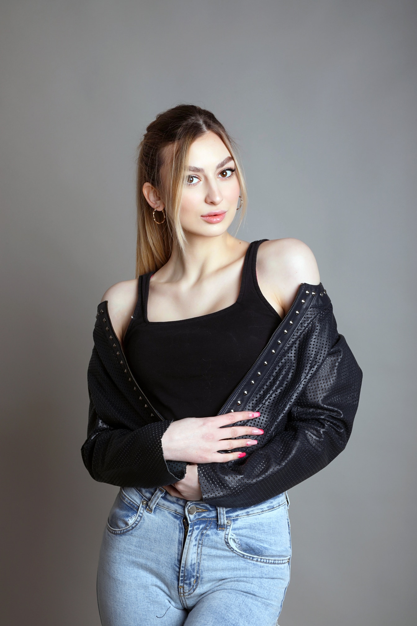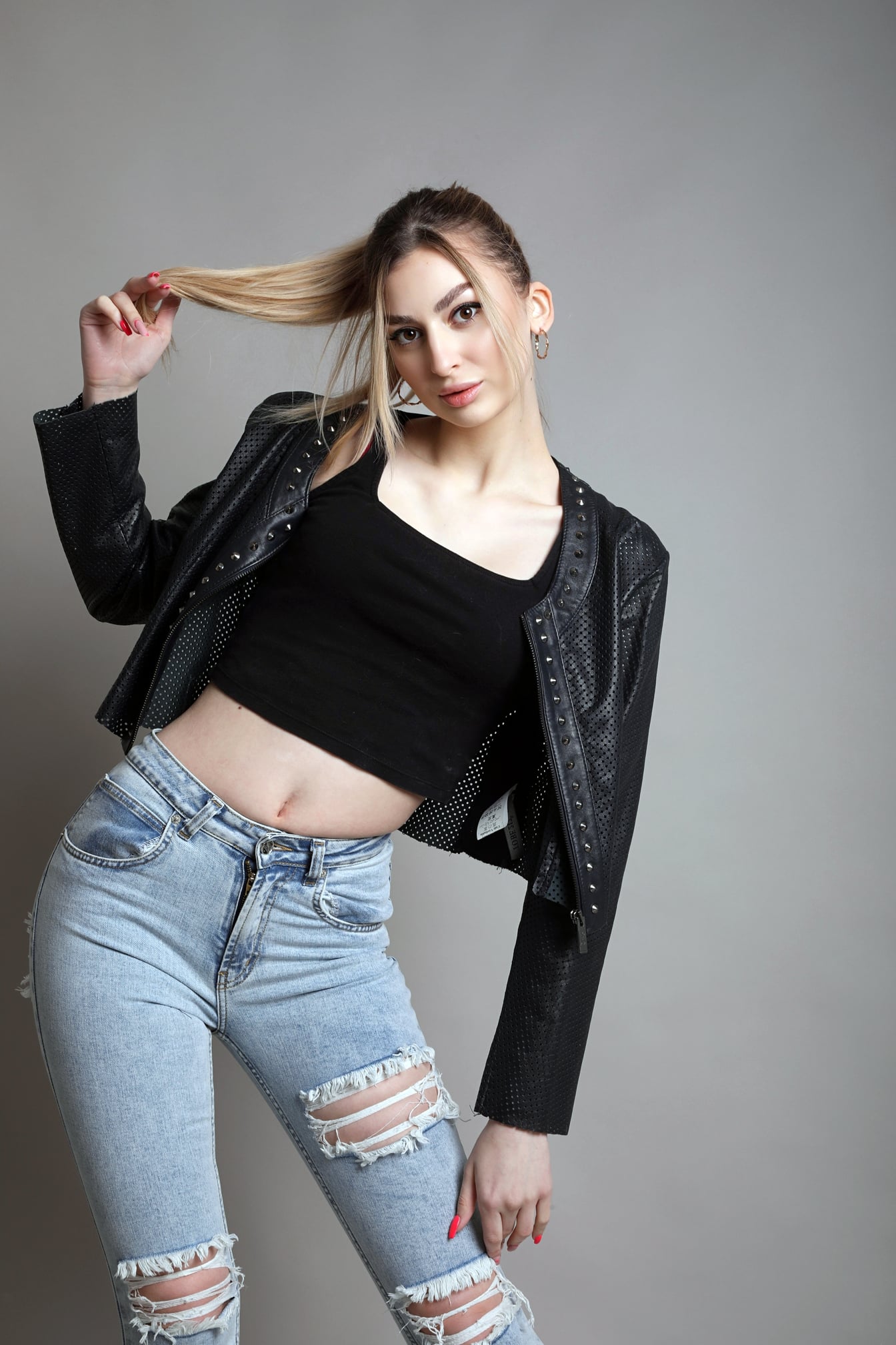 La modella indossa la taglia S, è alta 179 cm e pesa 72 kg.