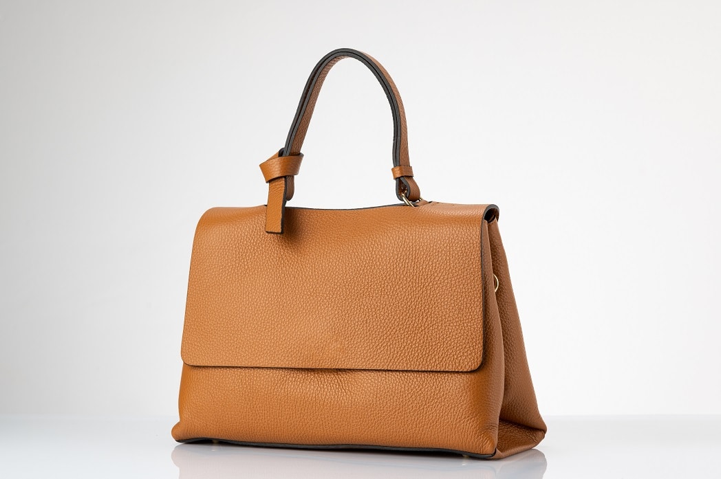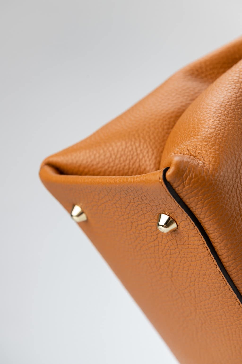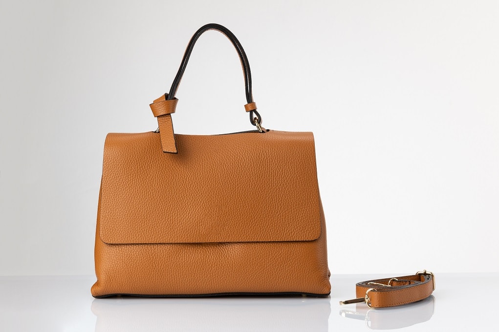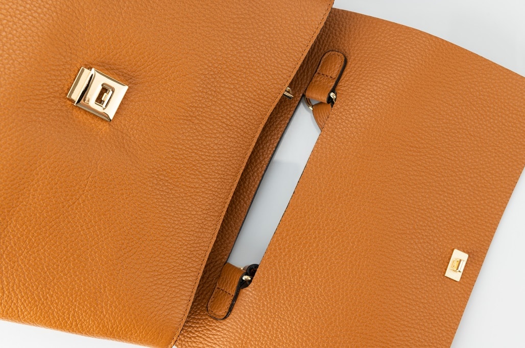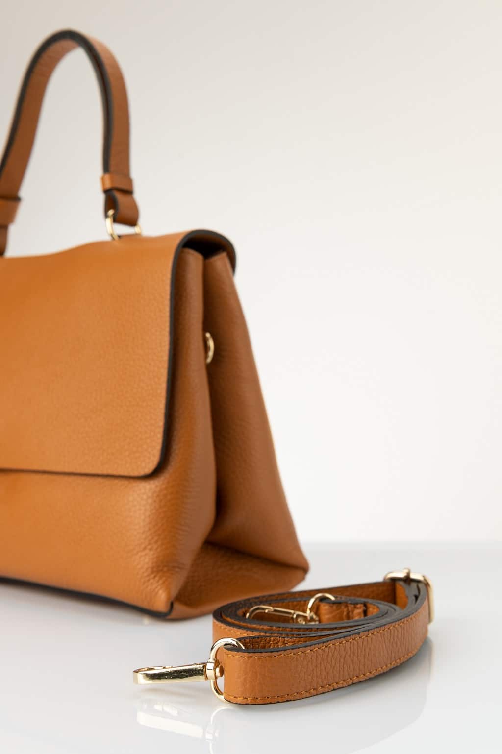 Borsa in pelle con tracolla regolabile, tasche con zip all’interno.