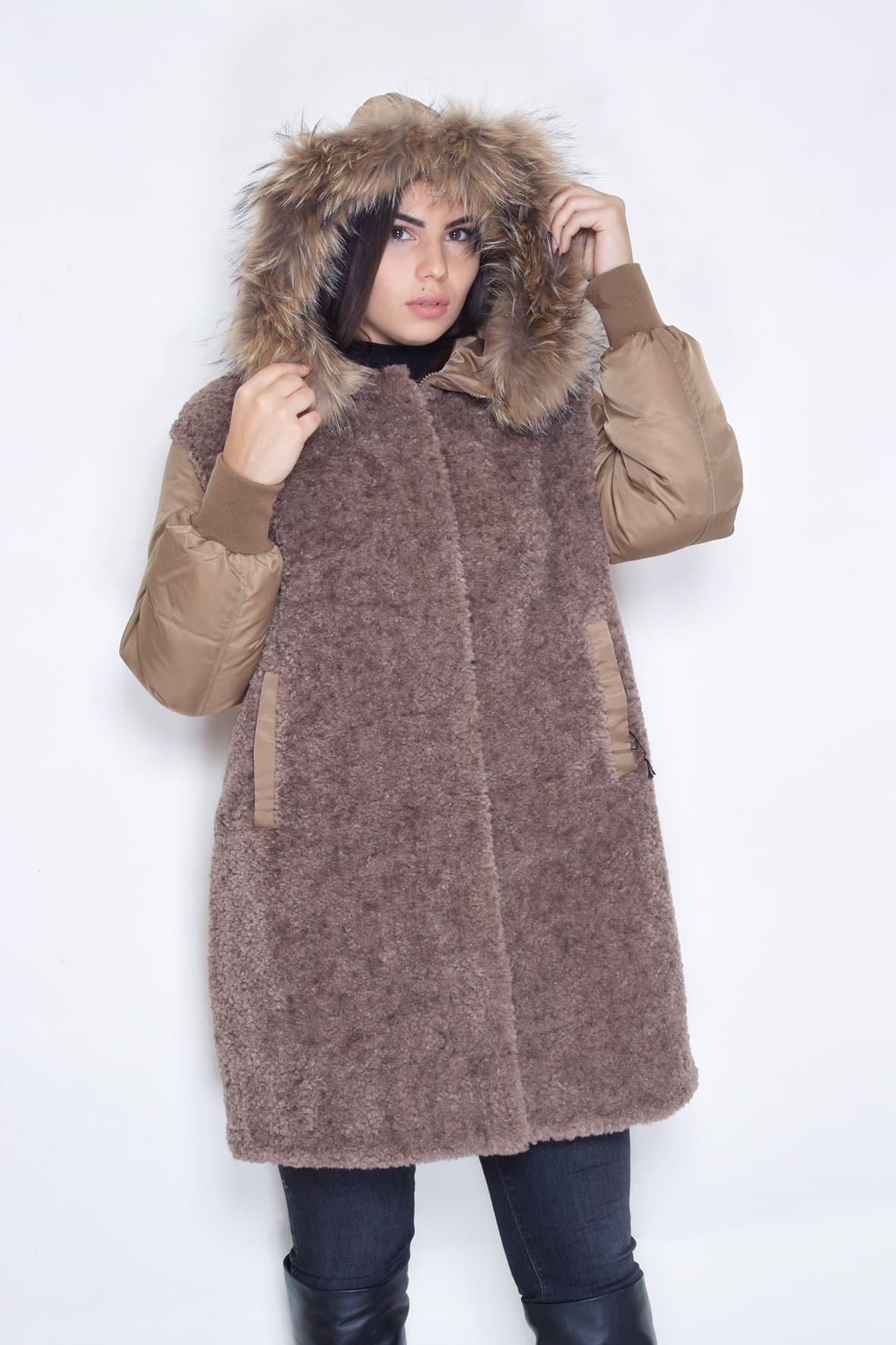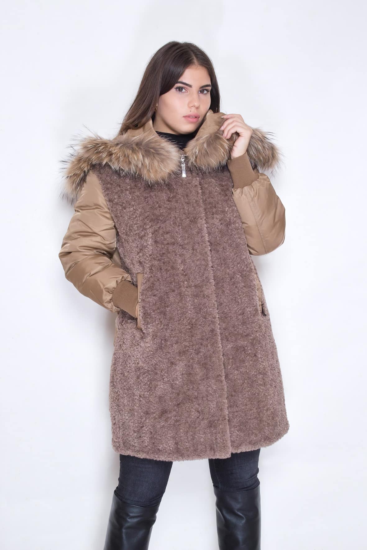 TERRY è il capo che ti manca, caldo, avvolgente, in tessuto waterproof, il cappuccio con pelliccia è dotato di zip, perché? per trasformare il cappuccio in un bellissimo collo in pelliccia.